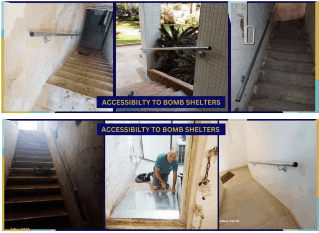 • And across 25 bomb shelters used by survivors in Bat Yam and Rishon LeZion, we installed sturdy banisters and bright lights so they could reach safety when the sirens sound.